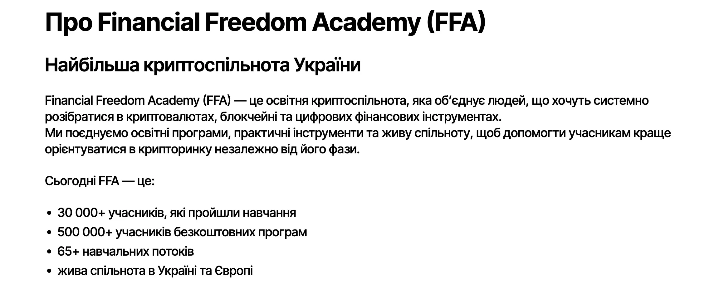 Уся комунікація з командою Financial Freedom Academy має інформаційний та освітній характер.